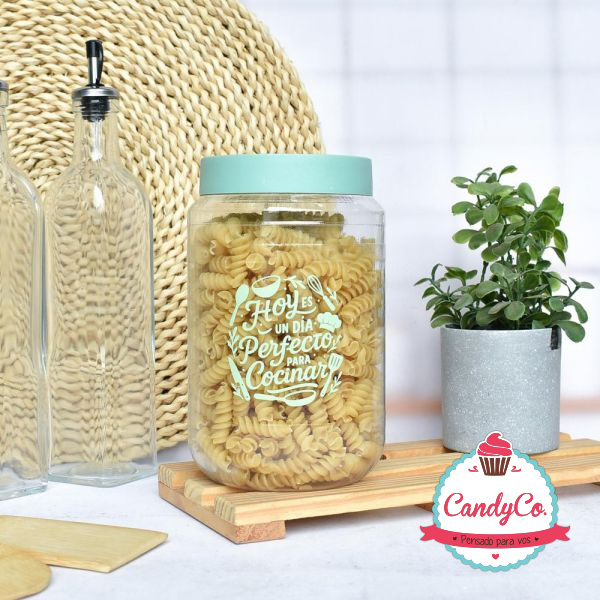 Tarro Contenedor de Plástico Alto Color Pastel con Frase Tapa Trama 1500Cc