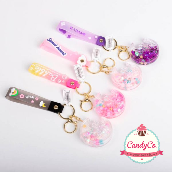 Llavero Medialuna, Estrella, Conejo con Líquido y Correa Bubble, Baimao, Little Life, Wish, Sweet Heart