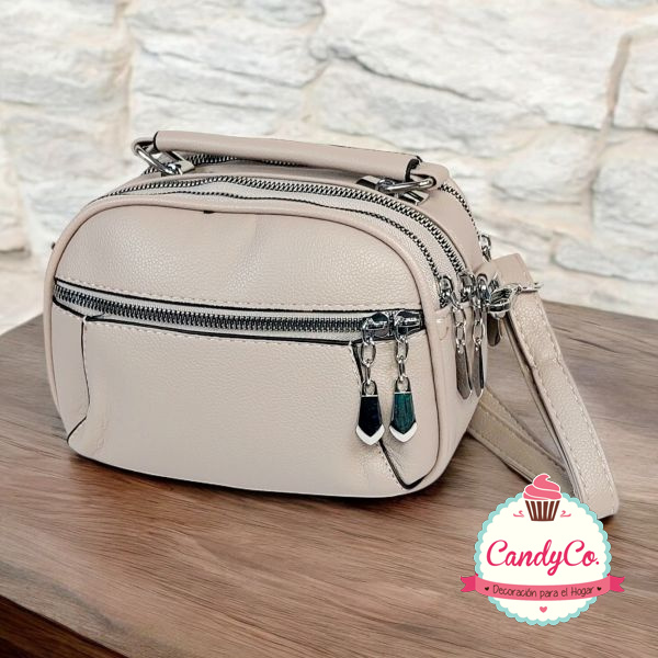 Bandolera, Cartera Lisa con 5 Cierres