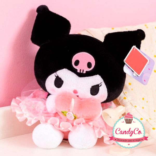 Peluche de Kuromi con Vestido Estampado Floreado y Corazón 40Cm