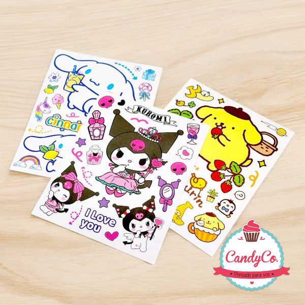 Plancha X1 de Stickers con Diseño de Personajes de Sanrio, Kuromi, My Melody, Cinnamoroll, Pompompurin, Pochacco