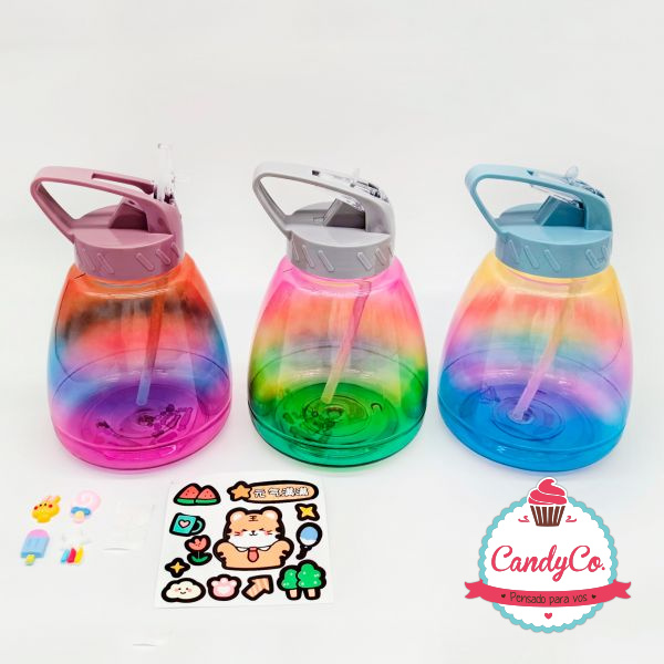 Botella de Plástico Base Ancha Multicolor con Pico y Stickers 1L