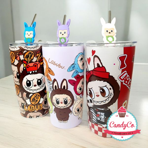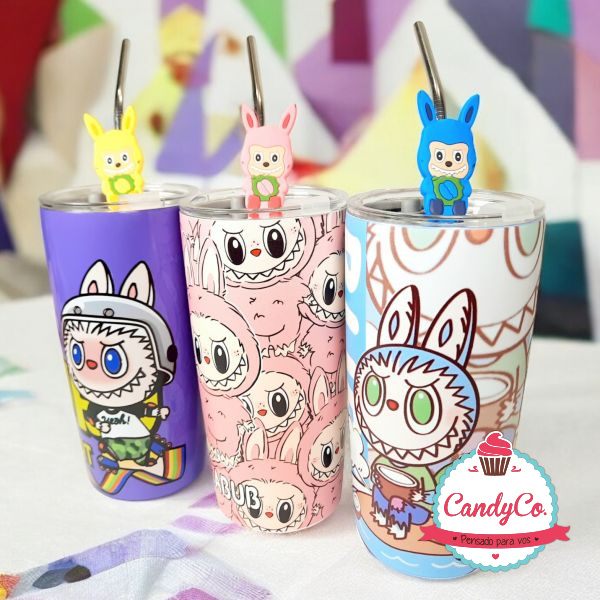 Vaso Térmico Estampado con Diseño de Labubu y Sorbete con Muñeco de Silicona