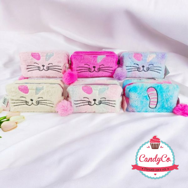 Portacosméticos de Peluche con Diseño de Gato con Orejas con Lentejuelas y Pompón