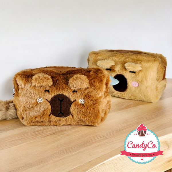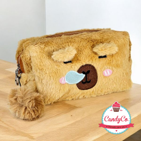 Portacosméticos de Peluche con Diseño de Carpincho, Capybara, Capibara y Pompón