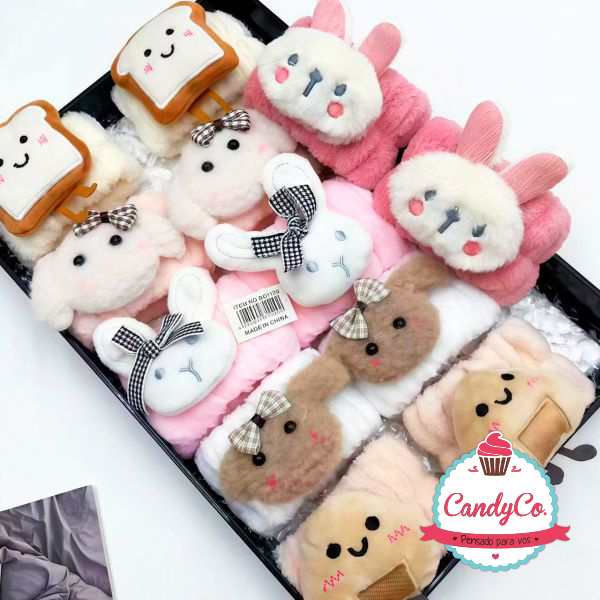 Set de Muñequeras de Peluche con Muñeco Conejo, Oso, Tostada X2 Naez