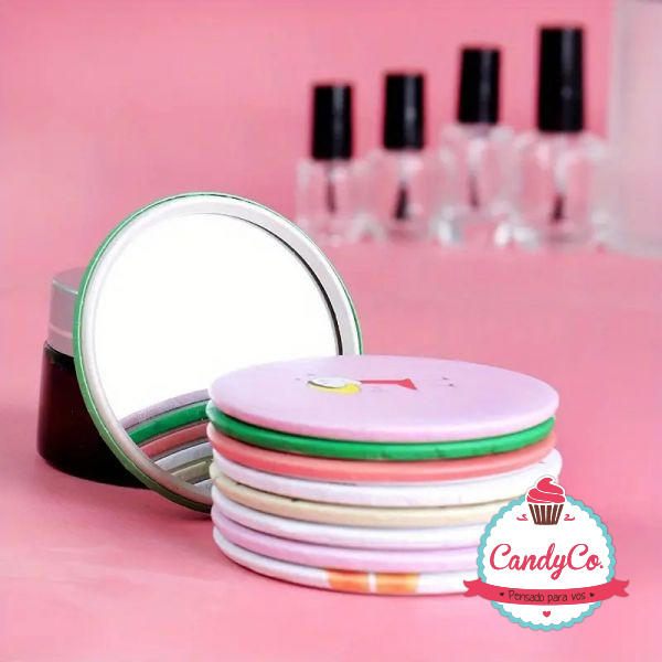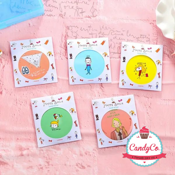 Espejo Chico Redondo Estampado de Cartera Happy Smile