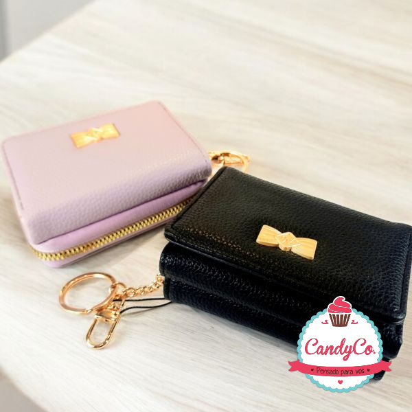 Billetera Textura con Detalle de Moño con Letra N Dorado y Llavero