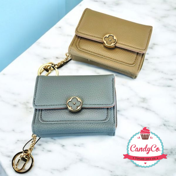 Billetera Lisa con Diseño de Flor y Detalles Dorados