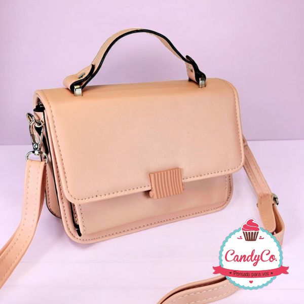 Cartera, Bandolera Lisa de Color con Detalle Cuadrado Rayado