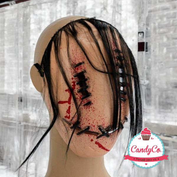 Máscara de Plástico Creepy Cosida con Pelo