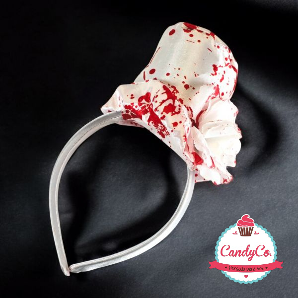 Vincha con Galera Sangrienta, Mini Sombrero Blanco con Sangre