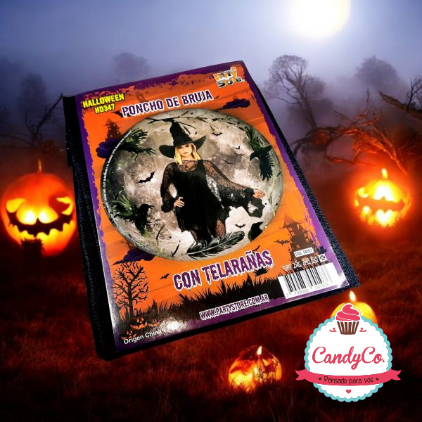 Poncho de Bruja con Telaraña Halloween 150X150Cm