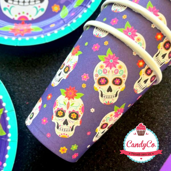Set de Vasos Descartables con Diseño de Calaveras Mexicanas Halloween X6