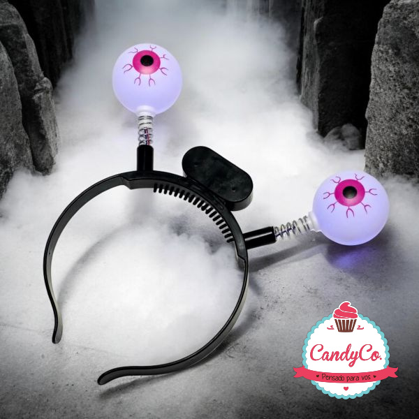 Vincha con Diseño de Telaraña y Dos Ojos con Luces Led a Pilas de Reloj