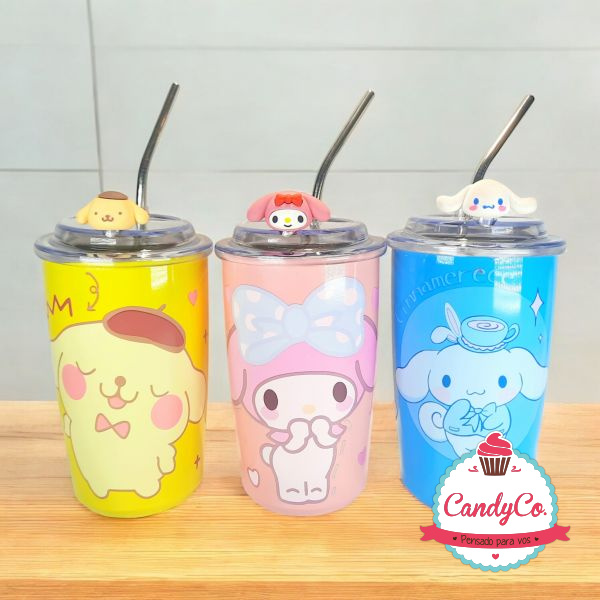 Vaso, Jarro Térmico de Color con Diseño de Sanrio, My Melody, Cinnamoroll, Pompompurín y Sorbete 400Ml
