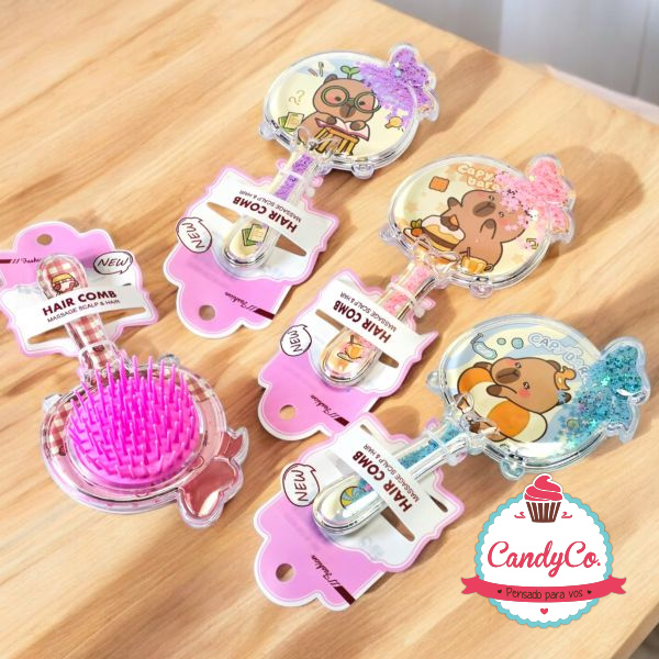 Cepillo para el Pelo Estampado con Diseño de Carpincho, Capibara, Capybara con Boina y Figuras, Pelotitas