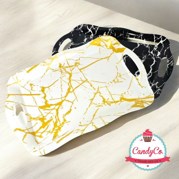 Bandeja de Melamina Estampada con Diseño Marmolado 34X23,5Cm