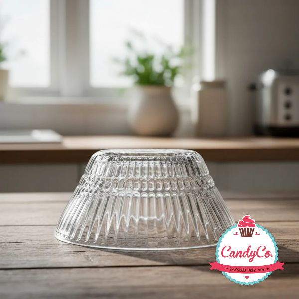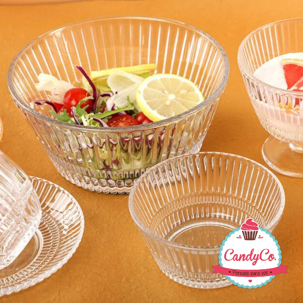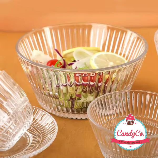 Bowl, Ensaladera de Vidrio con Diseño Rayado
