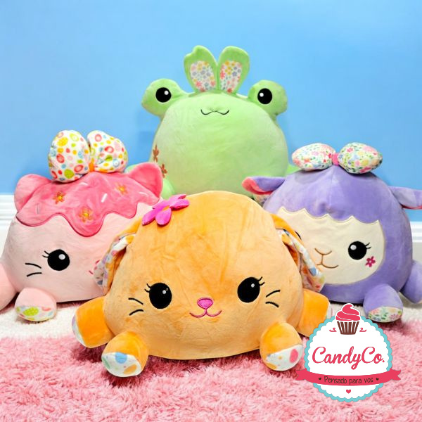 Peluche Animal con Moño, Orejas, y Patas Estampadas 30Cm