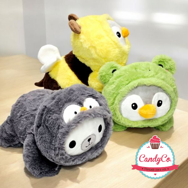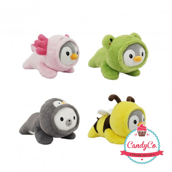 Peluche Animal, Pingüino con Disfraz de Rana, Sapo, Abeja, Ajolote, Oso Panda con Disfraz de Pingüino 26Cm