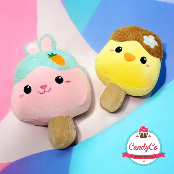 Peluche Paleta de Helado Pato, Pollo, Pollito, Conejo 25Cm