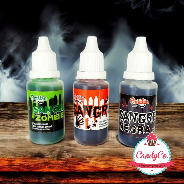 Set Mix de Sangre Falsa Roja, Negra y Verde X3