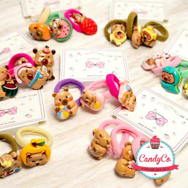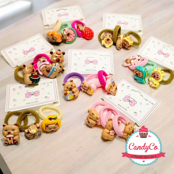 Set de Colitas para el Pelo con Muñeco de Plástico Carpincho, Capybara, Capibara X3 Varios Modelos