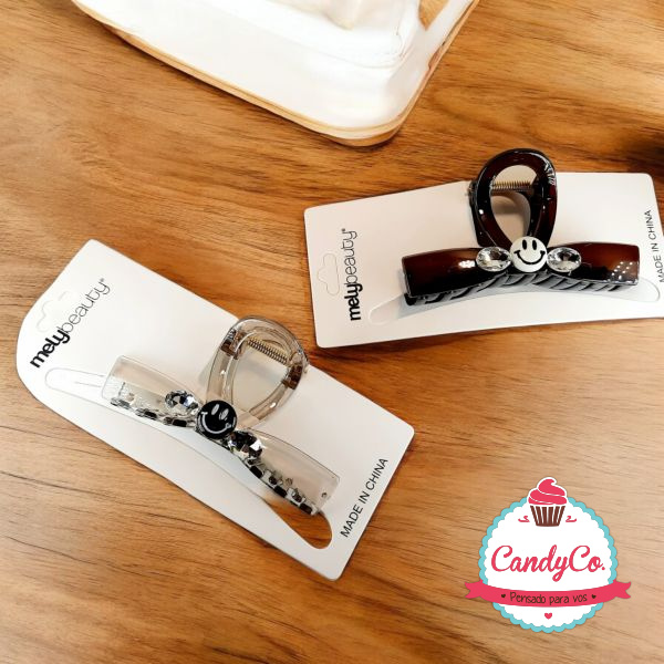 Broche para el Pelo Grande con Strass X2 y Dije de Emoji, Cara Feliz