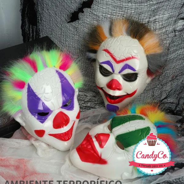 Máscara de Plástico con Pelos Multicolor Payaso Guasón