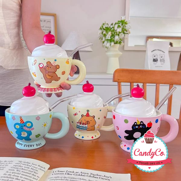 Taza de Cerámica Estampada con Diseño de Milkshake y Sorbete