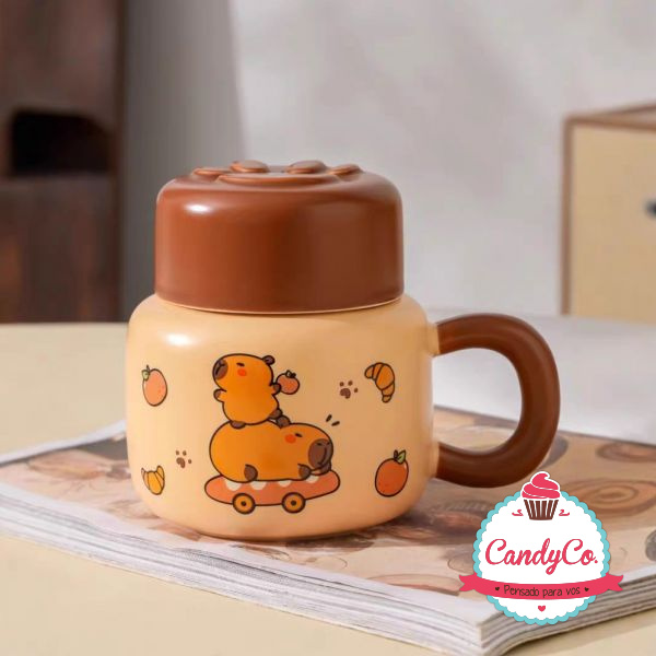 Taza de Cerámica con Tapa Huella Diseño de Capybara, Carpincho