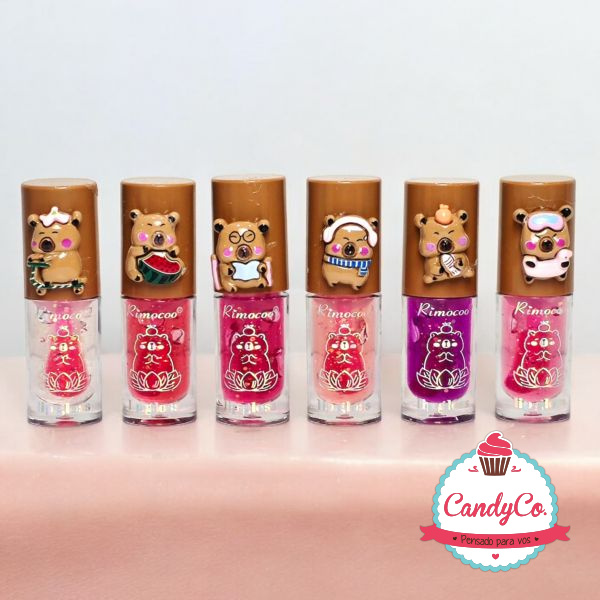 Brillo Labial Líquido Lip Gloss con Muñeco de Plástico Carpincho, Capybara, Capibara Rimocoo