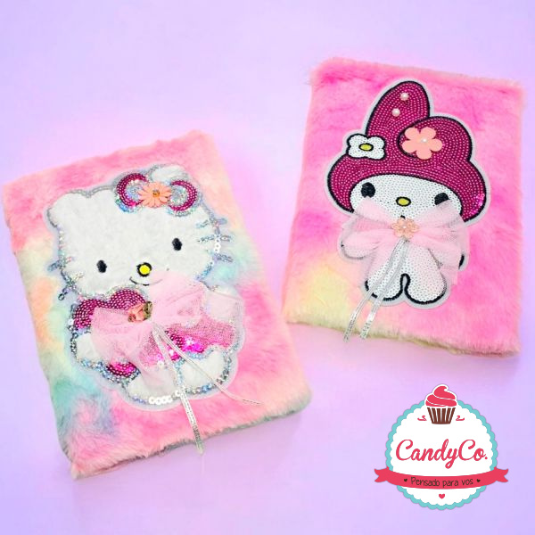 Cuaderno de Peluche con Diseño Bordado de Hello Kitty, My Melody con Lentejuelas y Moño