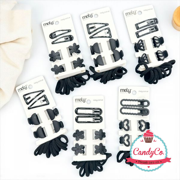Set de Colitas para el Pelo Sisas Chicas X10, Hebillas X2, y Broches X4 Mely Beauty