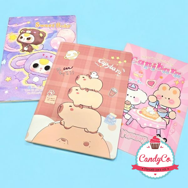 Cuaderno Tapa Blanda Estampado con Diseño de Carpincho, Capybara, Capibara, Bear's Holiday Yummy, Sweet Baby 18X26Cm