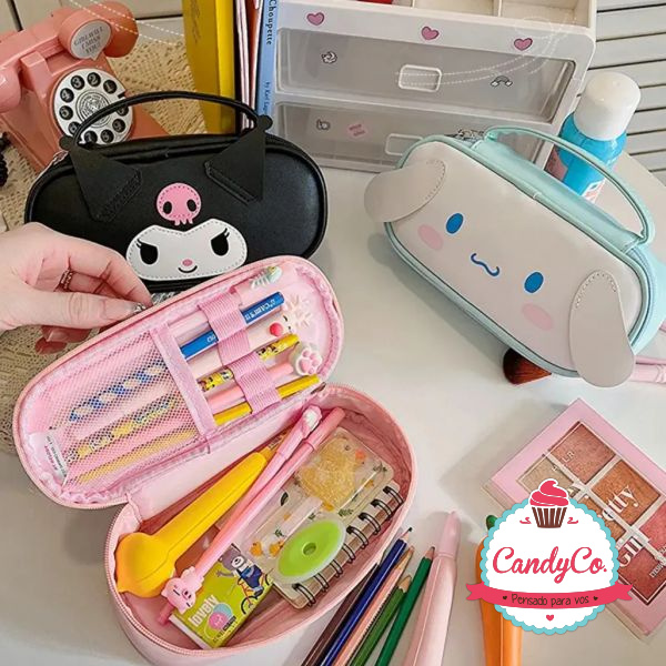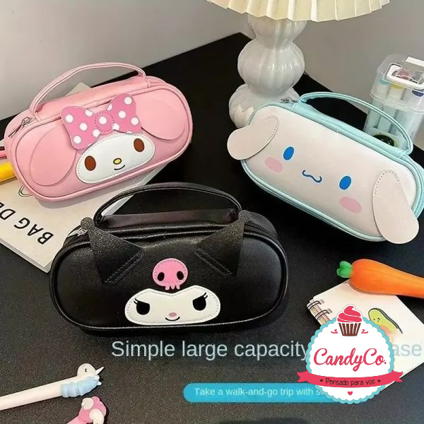 Cartuchera de Cuerina con Diseño de Kuromi, Me Melody, Cinnamonroll con Orejas