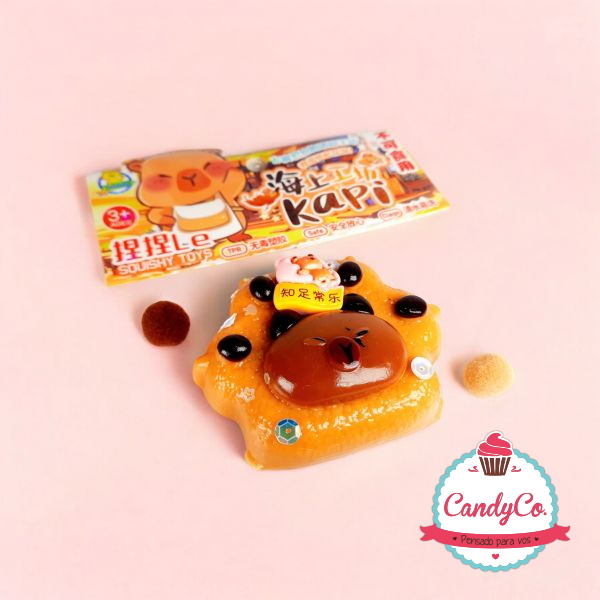 Squishy con Diseño de Huella con Capybara, Capibara, Carpincho y Figuras, Pompones