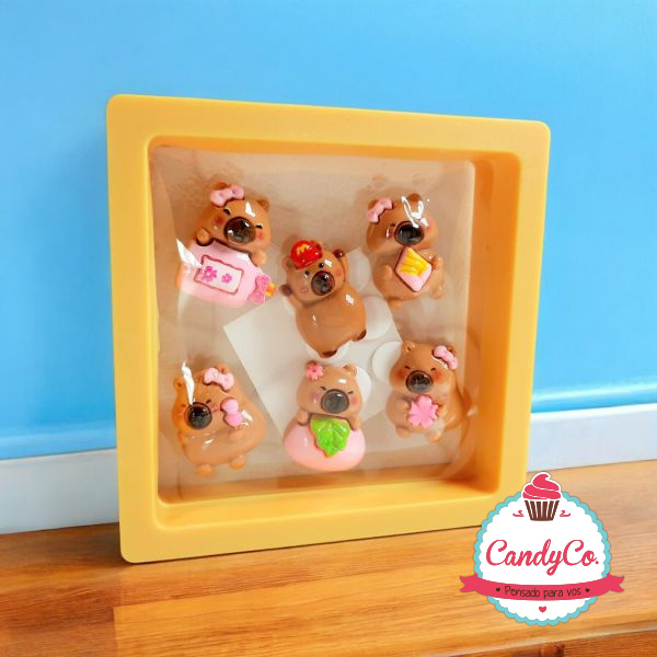 Set de Pines Autoadhesivos con Diseño de Capibara, Capybara, Carpincho X6 en Estuche Cuadrado