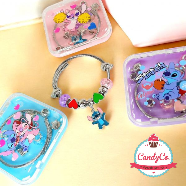 Pulsera con Dijes X5 con Diseño de Stitch en Estuche