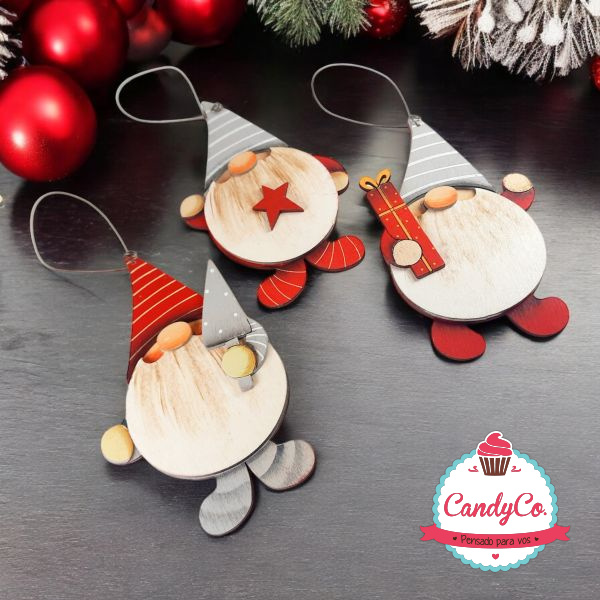 Adorno Colgante de Madera Pintado con Diseño de Duende de Navidad 13Cm