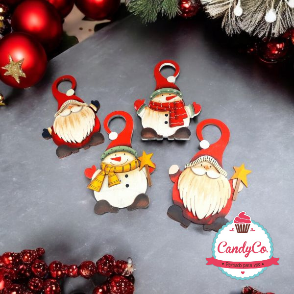 Adorno Colgante de Madera Pintado con Diseño de Muñeco de Nieve y Papa Noel, Navidad 13Cm