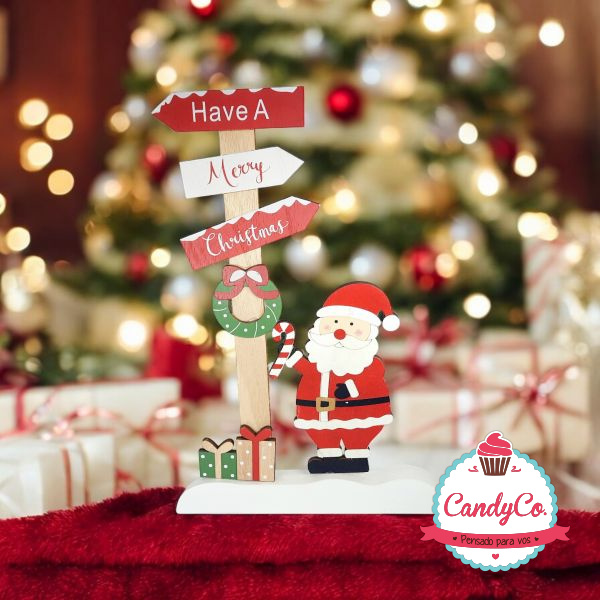 Adorno de Madera con Papá Noel y Poste con Carteles de Navidad