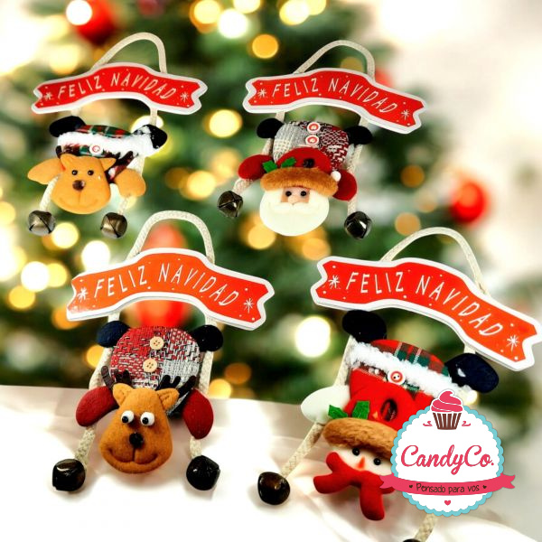 Adorno Cartel Colgante Feliz Navidad con Muñeco y Dos Cascabeles
