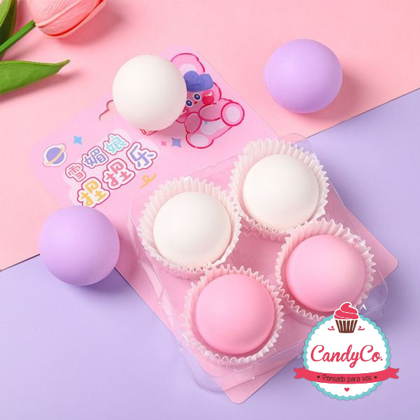 Set de Squishys Redondos con Molde de Cupcake X4 en Blister de Conejo