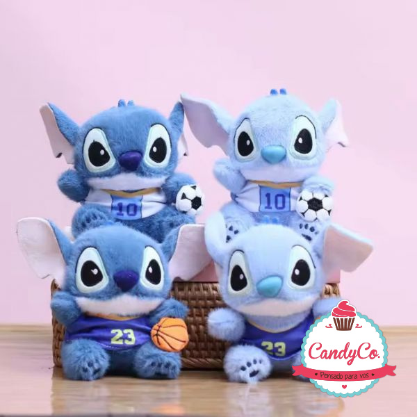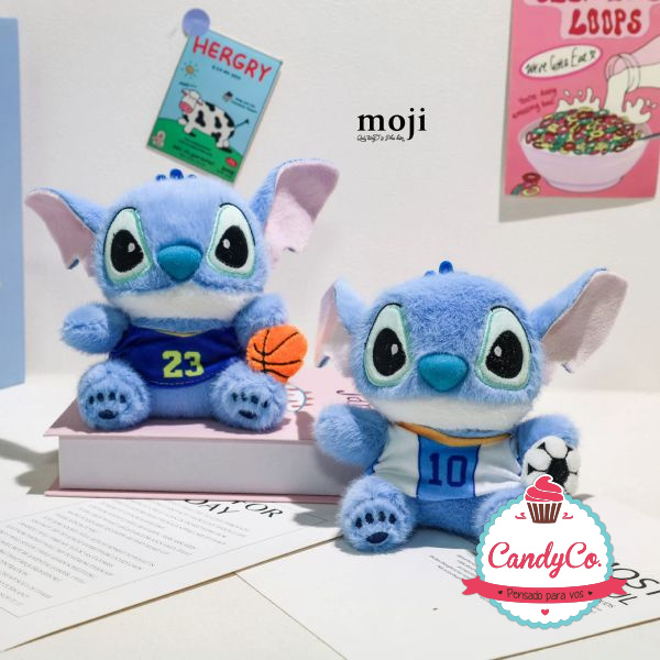 Llavero de Stitch Azul con Camiseta y Pelota de Fútbol, Básquet