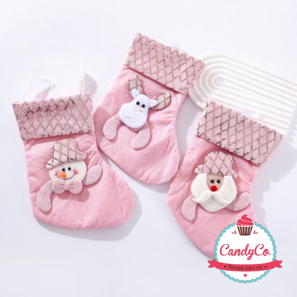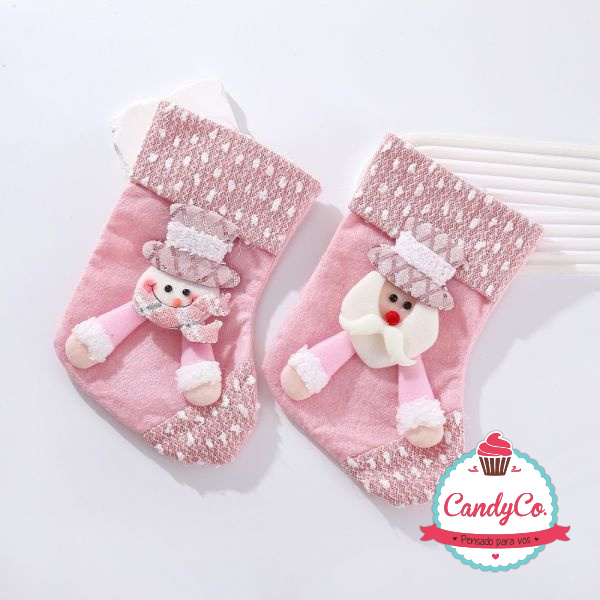 Adorno Bota de Navidad Mediana 23Cm con Muñeco Rosa
