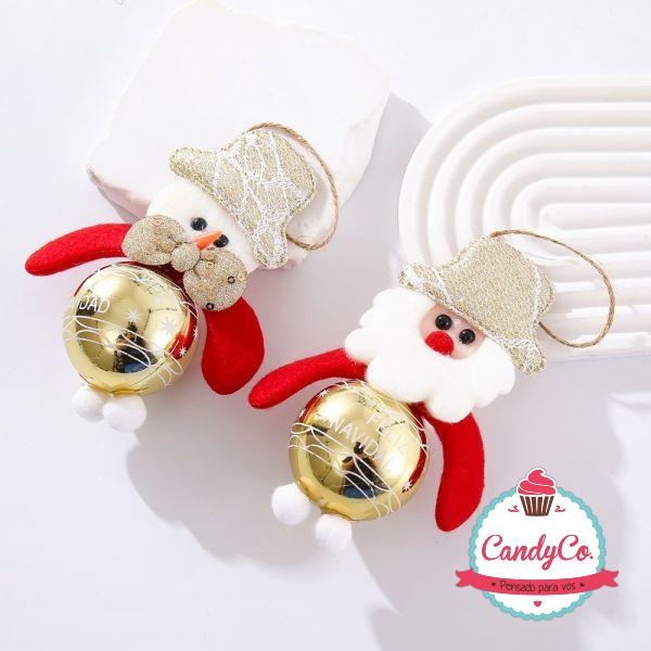 Adorno Colgante Muñeco con Cascabel Feliz Navidad de Color Dorado y Rojo