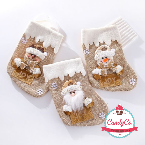 Adorno Bota de Navidad Mediana 23Cm con Diseño Rústico y Muñeco