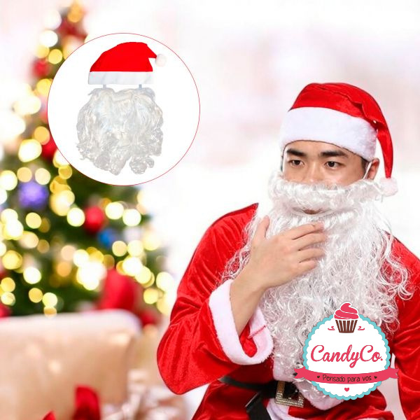 Set de Barba Falsa y Gorro de Papá Noel para Disfraz Infantil